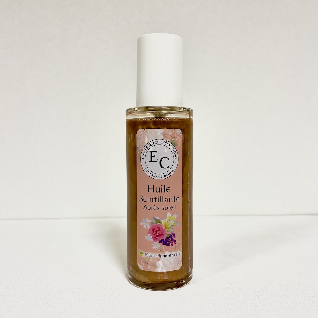 Sublimez votre peau et vos cheveux avec l’huile scintillante après soleil Bio Une essence d’émotions.